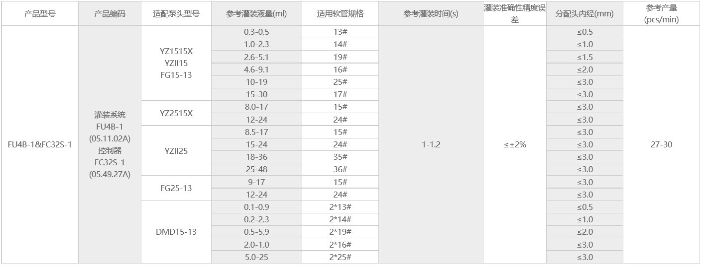 4(單組灌裝系統(tǒng)FU4B-1)~32(8組灌裝系統(tǒng)FU4B-1) |