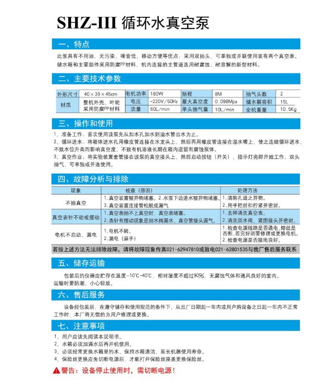 電機(jī)功率:180W電壓:~220v/50Hz流量60L/min楊程8M最大真空度0.098Mpa單頭抽氣量10L/min抽氣頭數(shù)量:2儲水箱容積:15L材質(zhì):整機(jī)外殼、泵殼、葉輪、采用防腐PP材料。外形尺寸:40*39*45cm