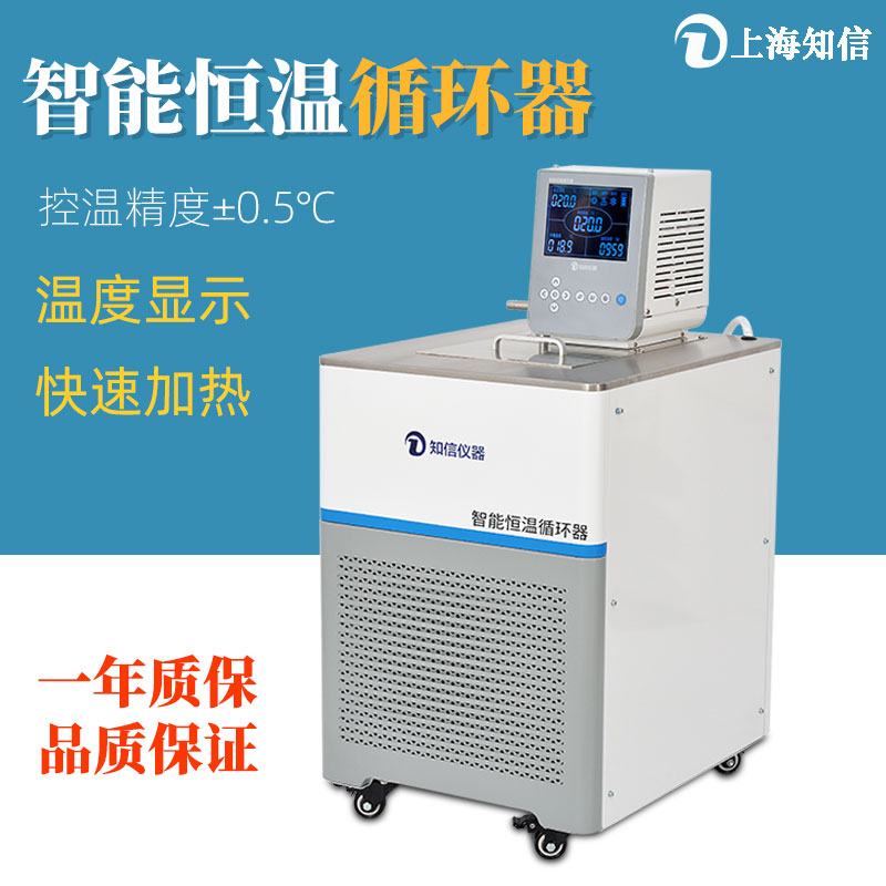 智能恒溫循環(huán)器 用途智能恒溫循環(huán)器是自帶制冷和加熱的高精度恒溫源。它廣泛應(yīng)用于石油、化工、冶金、醫(yī)藥、生化、物性測試及化學(xué)分析、高等院校、工廠實(shí)驗(yàn)室及計(jì)量質(zhì)檢等研究部門??稍谠〔蹆?nèi)進(jìn)行恒溫實(shí)驗(yàn),亦可通過軟管與其他設(shè)備相連,作為恒溫源配套使用,如旋轉(zhuǎn)蒸發(fā)器、電泳儀、粘度計(jì)、醫(yī)用冷帽、降溫毯等,或用于給其它設(shè)備進(jìn)行循環(huán)冷卻,如電鏡、分子泵、離子泵、擴(kuò)散泵、微波治療機(jī)等。