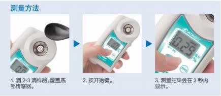 滴2-3滴樣品至數(shù)顯鹽度計(jì)棱鏡表面→按下START(開(kāi)始)鍵→測(cè)量值及溫度將在3秒內(nèi)顯示。