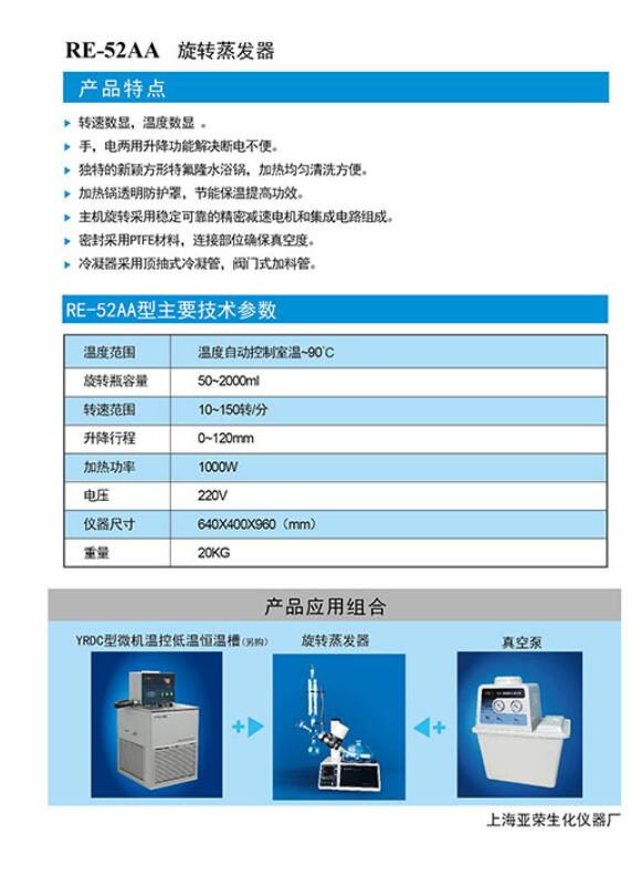 亞榮RE-52AA旋轉(zhuǎn)蒸發(fā)儀(金葉)