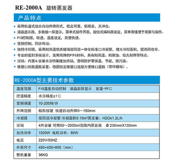 亞榮RE-2000A旋轉(zhuǎn)蒸發(fā)儀(金葉)