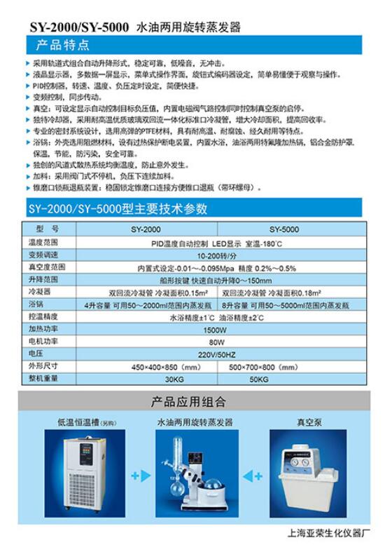 亞榮SY-2000水油兩用旋轉(zhuǎn)蒸發(fā)儀(金葉)
