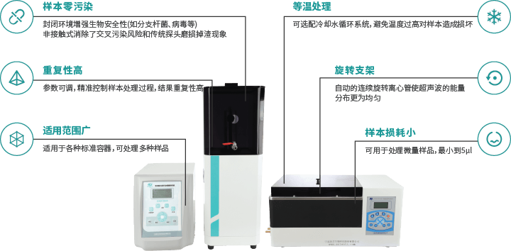 • 旋轉(zhuǎn)支架 自動的連續(xù)旋轉(zhuǎn)離心管使超聲波的能量分布更為均勻