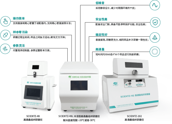 SCIENTZ-48L內(nèi)置壓縮機,支持冷凍研磨,有效避免因研磨件摩擦生熱對樣品核酸及蛋白造成的影響。
