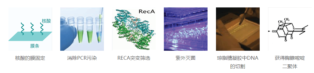 SCIENTZ03-II紫外交聯(lián)儀是一種多用途的245nm紫外輻射系統(tǒng),主要用于將核酸交聯(lián)固定于膜上。使用本儀器可在30-60秒之內(nèi)將核酸固定于雜交膜上,且雜交信號比傳統(tǒng)烘烤法提高5-10倍。另外,該儀器還可用于瓊脂糖凝膠中DNA的切割、RecA突變篩選、嘧啶二聚體產(chǎn)生的部分限制性內(nèi)切酶消化、UV滅菌消除PCR污染等。