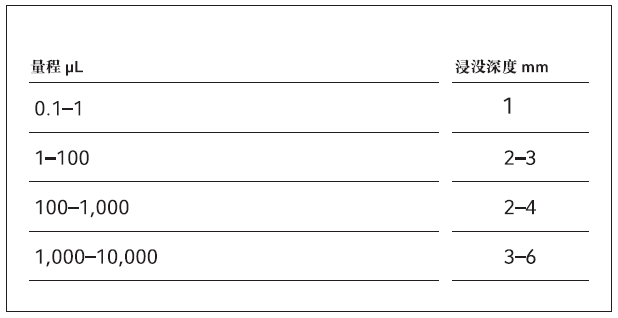 吸取液體時,請保持移液器垂直。吸頭浸沒深度盡量淺一些。