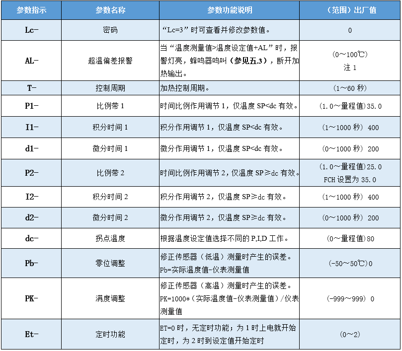 在主界面,長按設(shè)定鍵3秒后,界面轉(zhuǎn)換至參數(shù)設(shè)定界面,顯示“Lc-”。